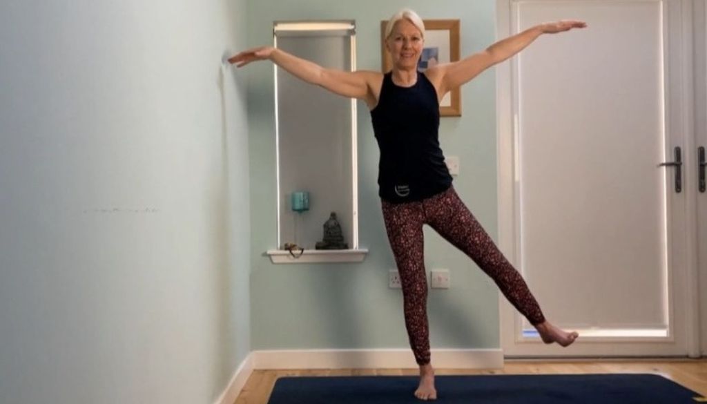 We start standing in this class, warming up and working on our balance. As we move to the floor, Gillian will take you through a series of moves to challenge your coordination and core strength, both of which will help with your balance.