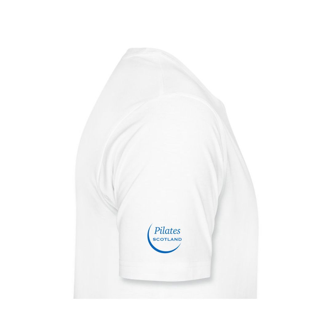 Our modern fit Pilates Scotland T-shirts are made from 100% Combed Ringspun Cotton for super comfort and quality. A regular fit and has classic taped neck and twin needle stitching detail on the sleeve and bottom hem.